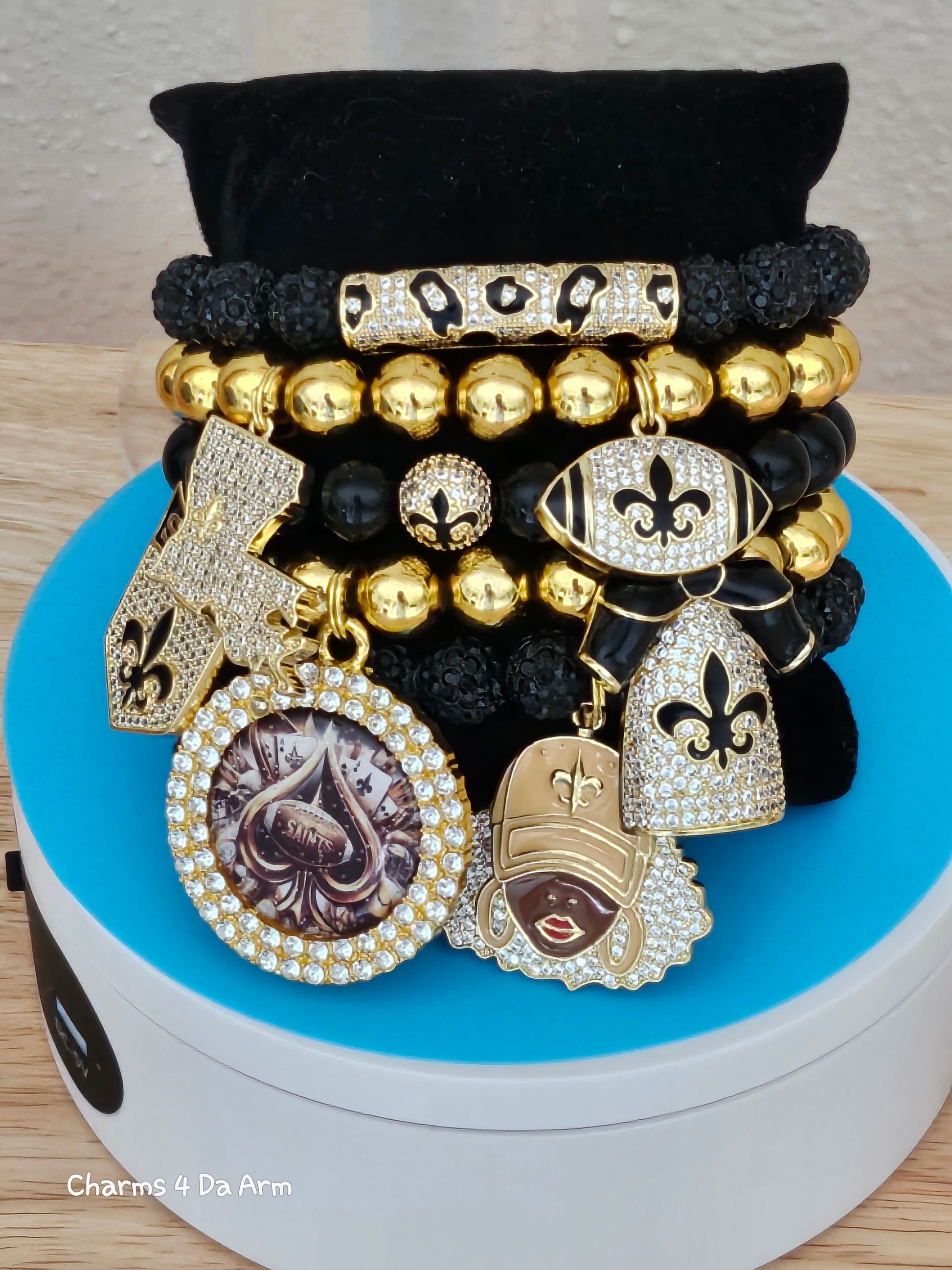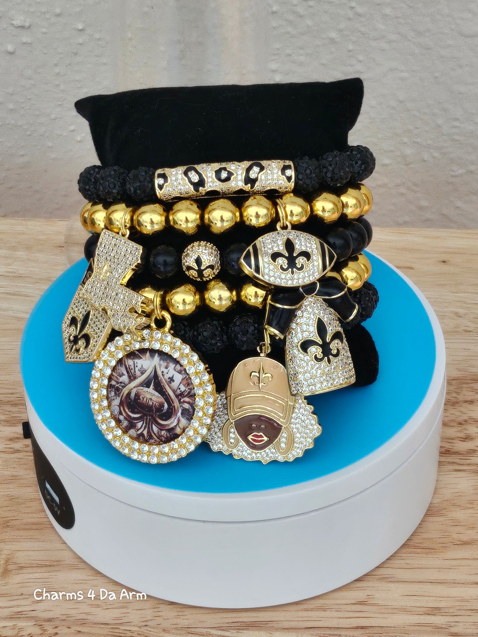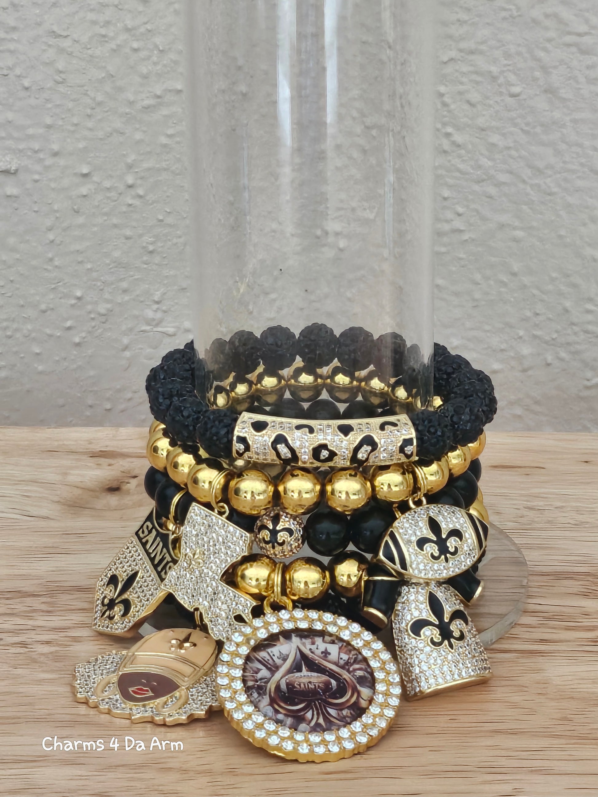 5 piece bracelet set with 6 charms and 2 spacers. Fits average size wrist. 7 1/2 size with moderate stretch.